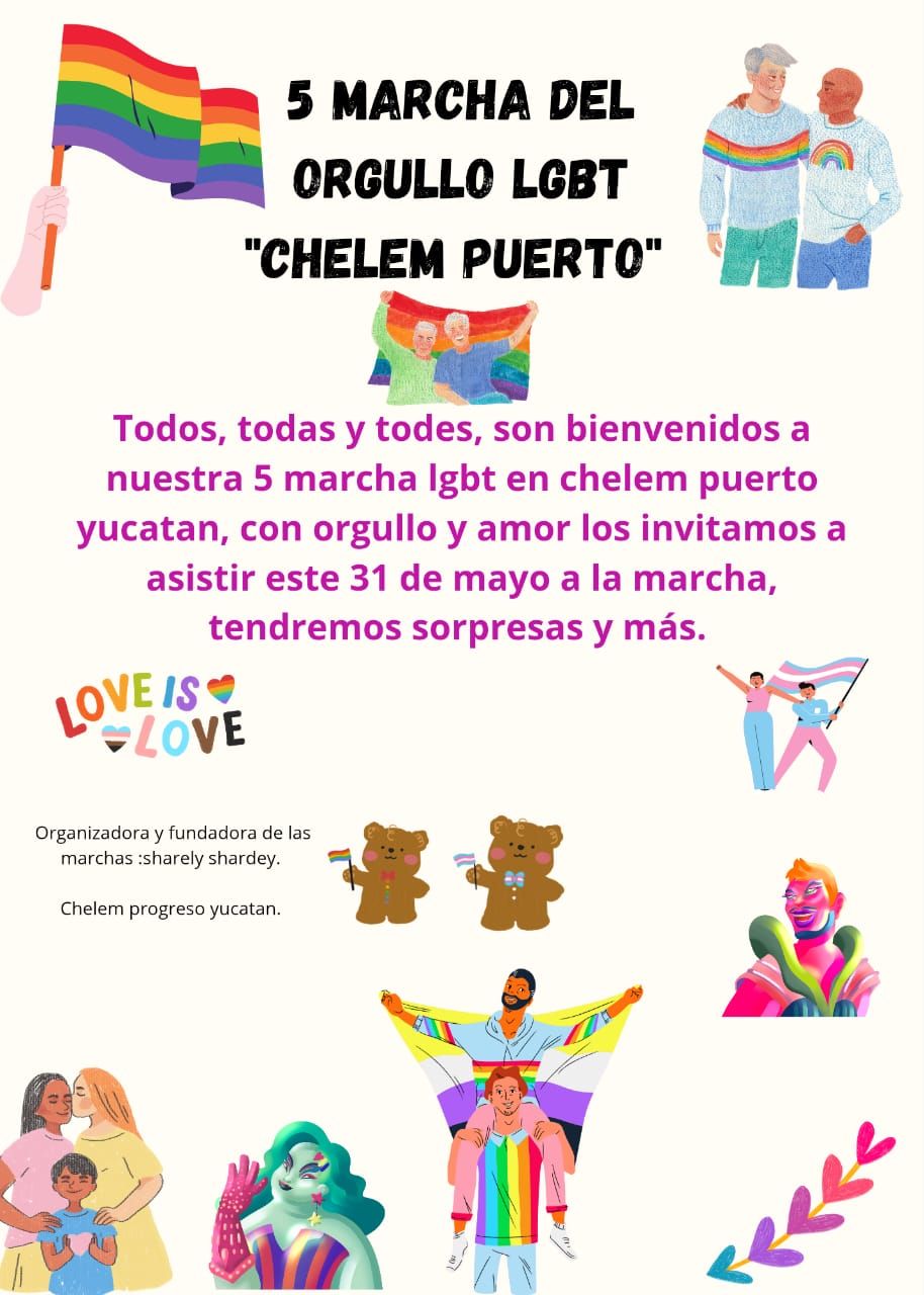 La marcha del orgullo en Chelem es sábado el 31 de mayo. Reunir a 17 hrs a Gasolinera del Puerto de Chelem