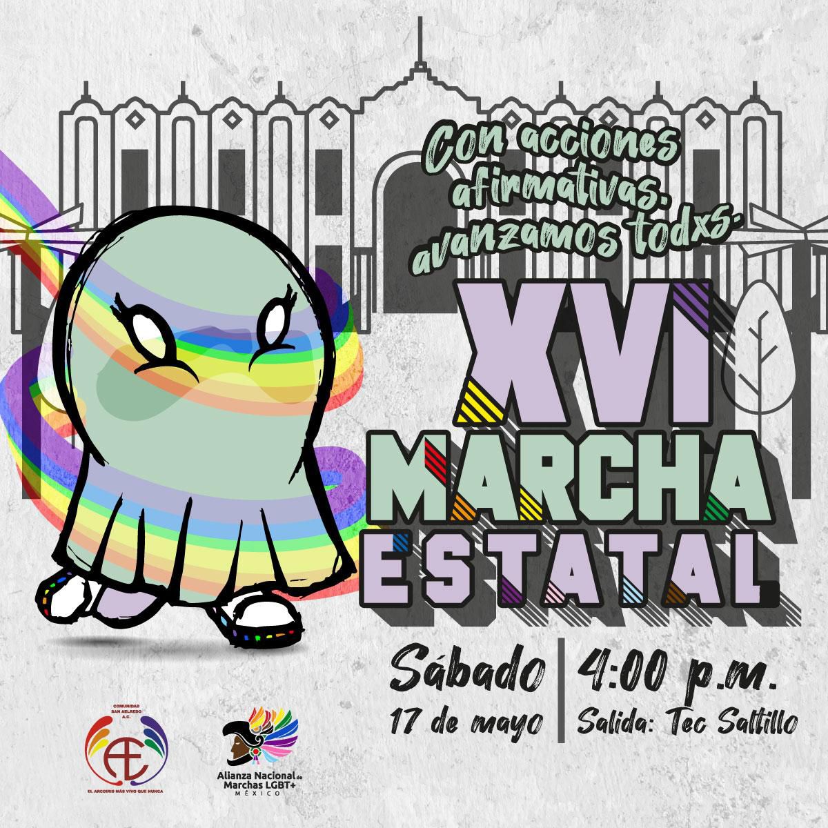 Marcha del Orgullo LGBTIIIIQ+ XXIV en Aguascalientes es sábado el 14 de junio, 17:00 hrs en el Aguilla de Plaza de Armas