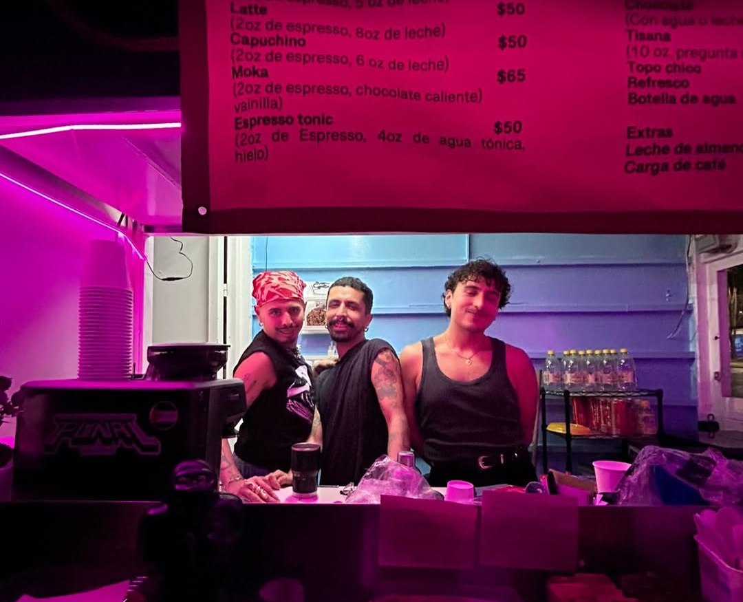 Cafetería en el calle con dueño gay. Cafe, bebidas, comida.