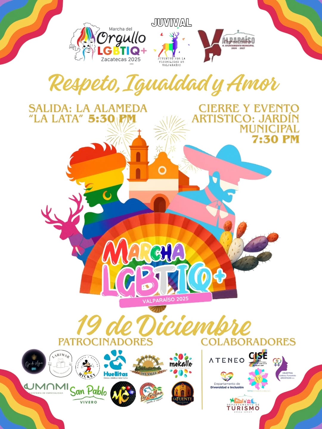 El Marcha LGBT+ en Valparaíso, Zacatecas se realizará viernes el 19 de diciembre