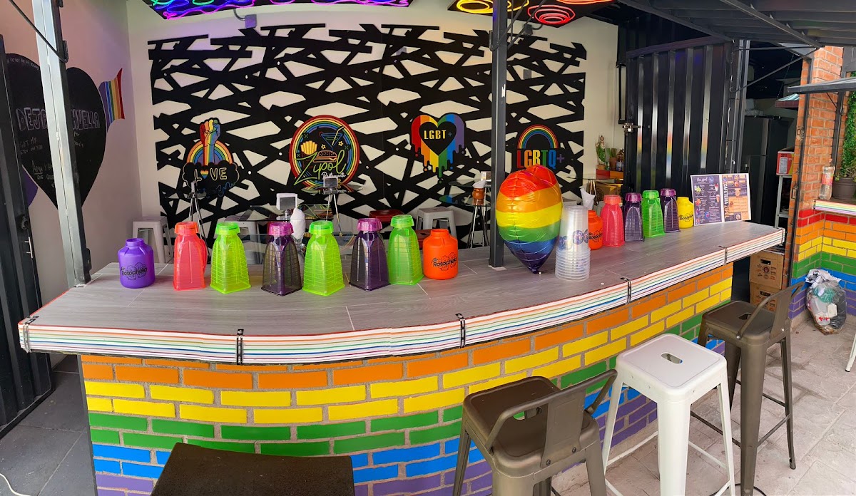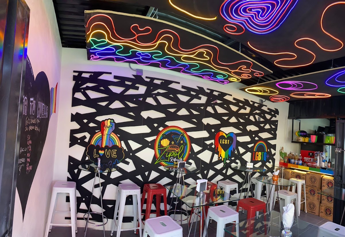 Restaurante, cafetería y bar decorados con banderas arcoíris