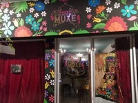 Galería de arte con artistas locales que también sirve cócteles por la noche y café durante el día.